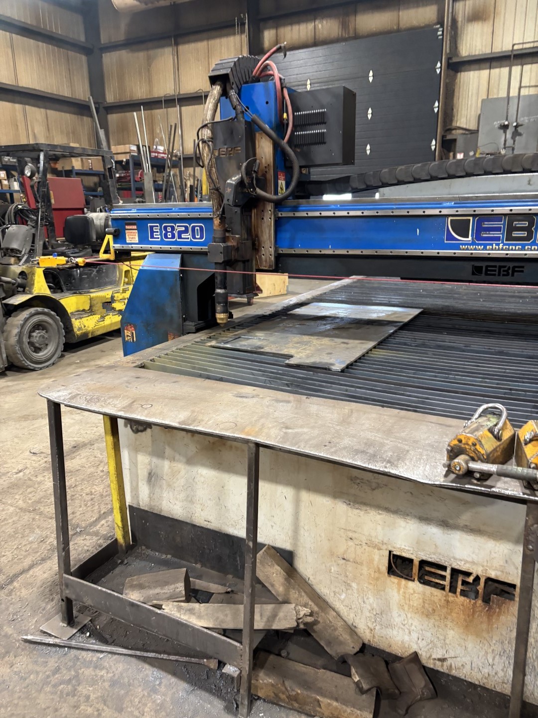 8' x 20' EBF E820 CNC PLASMA CUTTING TABLE, 2016 MANUFACTURER: EBF MODEL: EBF820 YEAR: 2016 CAPACITY: 3" STEEL-ALUMINIUM-STAINLESS EQUIPPED WITH: HYPERTHERM HPR400XD HYPERTHERM EDGE PRO CONTROL DUST COLLECTOR (CONCEPT AIR) VIDEO AVAILABLE!