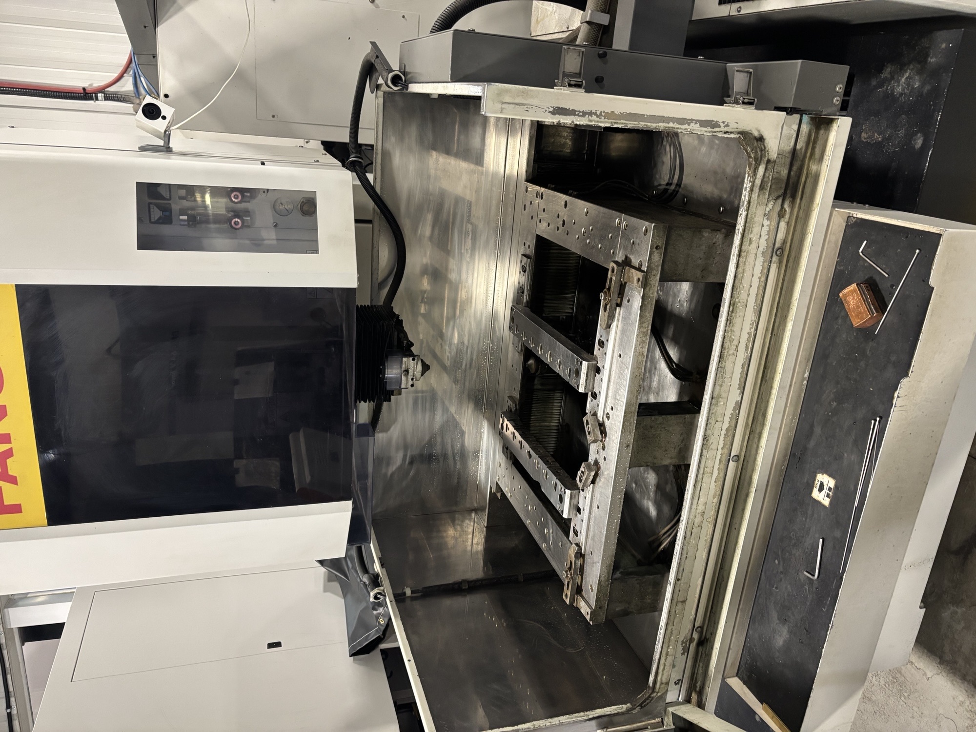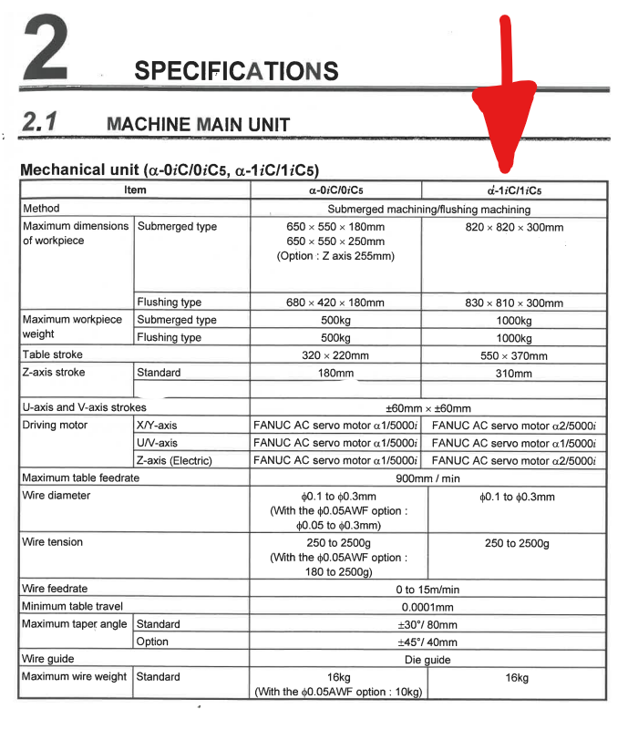 FANUC ROBOCUT ALPHA-1iC CNC WIRE EDM, FANUC 180is-WB, 2007 - ONLY 12193 RUN HOURS! APPROX SPECIFICATIONS(SUBJECT TO YOUR VERIFICATIONS) : Cutting Travels: 21.7″x14.6″x12.2″. UV axis travel ±2.4″x ±2.4″. Max. taper angle ±12° AWF on or ±30°AWF off. Maximum work-piece dimensions: 32.28″ x 32.38″ x 12.2″. Wire diameter .0036″~.012″. Max. wire mass 35 lbs. Max table feed 50 in/min. Equipped With: AUTO WIRE THREADER Fanuc 180is-WB Control APPROX. WEIGHT: 7000 LBS