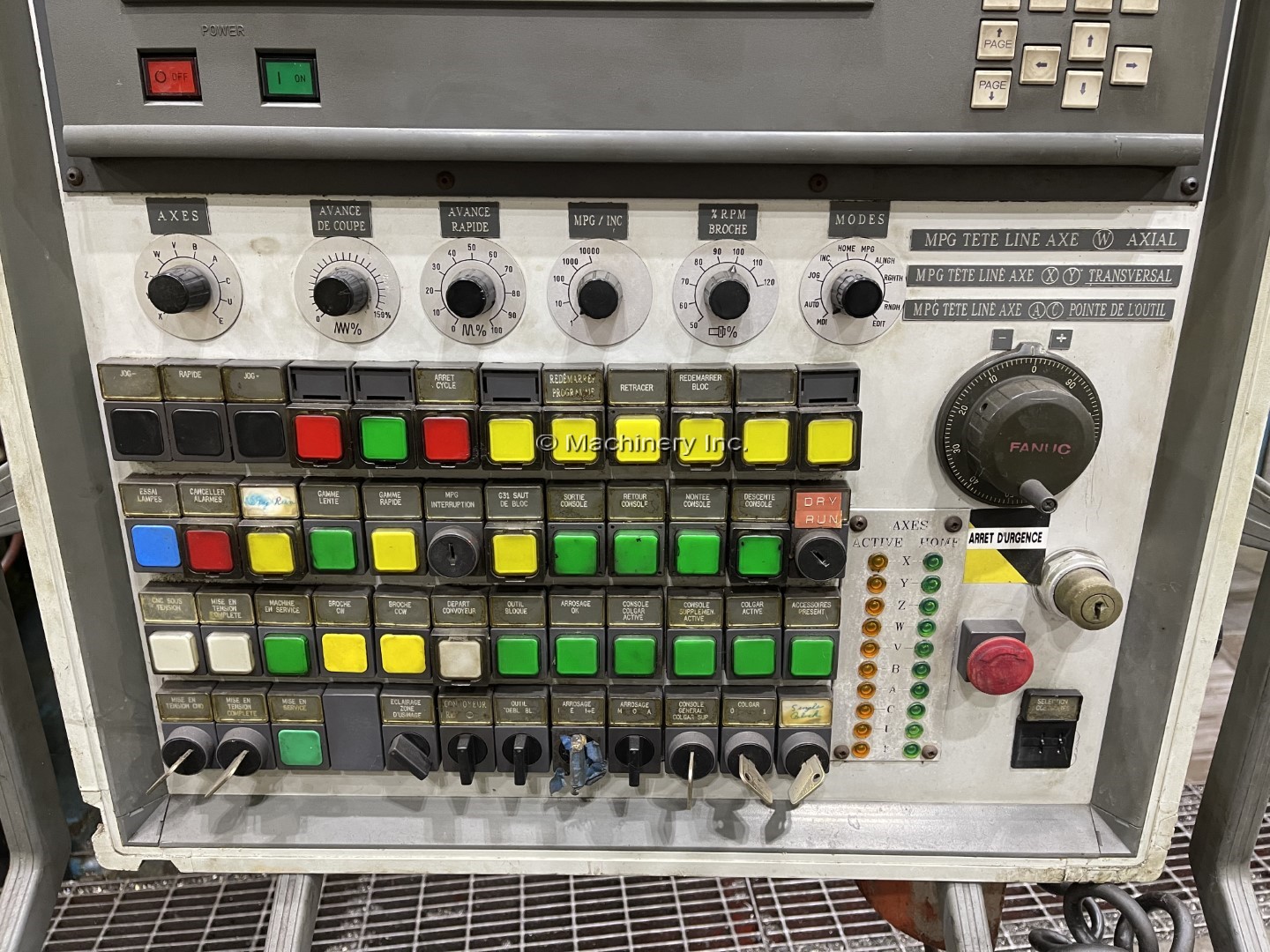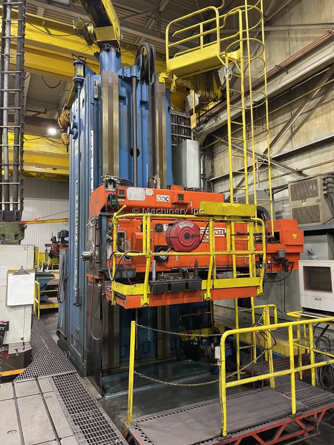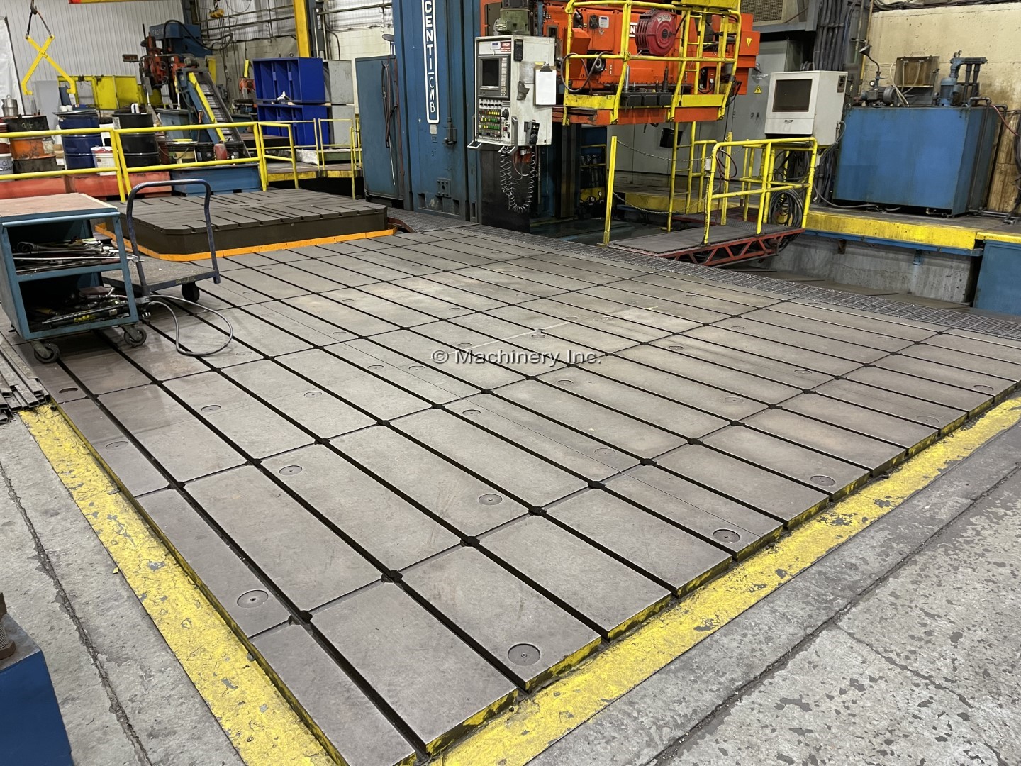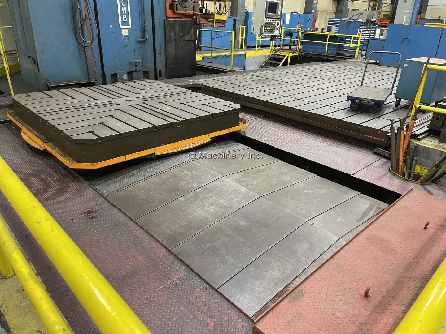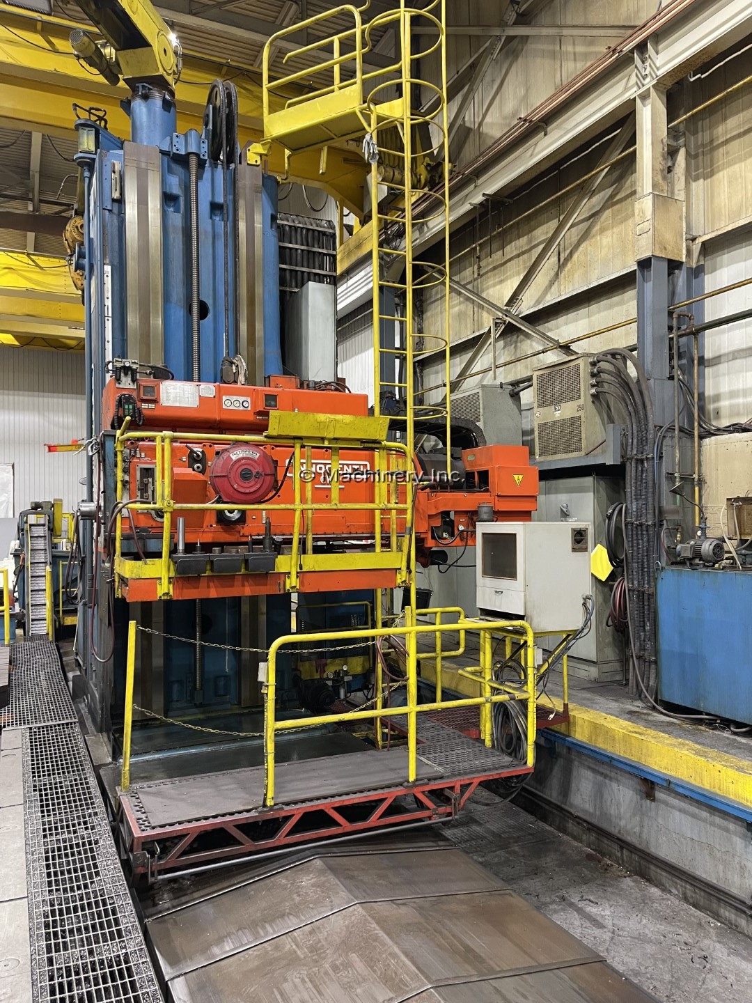 6" Innocenti 10-Axis CNC Ram Type Floor Horizontal Boring Mill Manufacturer: Innocenti Model: FAF 147.5 Year: Overhauled/Retrofitted completely in 1995 by MORANDO in Italy. Main Motor: 85 HP X Travel Column Horizontal 433" (36') (11000 MM) Y Travel Headstock Vertical 138" (11-1/2') (3500 MM) Z Travel Headstock, Ram Axial 29.5" (749.3 MM) W Spindle Axial 59" (1498.6 MM) Spindle Speeds: 5-1540 RPM Equipped With: FANUC 15M - 10 AXIS - CNC CONTROL 108" X 108" Colgar TRT 2000 2-Axis CNC Contouring & Infeeding Rotary Table W/ 105" Infeed Travel & 60 Ton Weight Capacity. Chip Conveyor OPTIONNAL(EXTRA COST): HENRI-LINE 2-AXIS HEAD FOR 5 AXIS SIMULTANEOUS MACHINING APPROX WEIGHT WITHOUT COLGAR ROTARY TABLE: 150,000 LBS