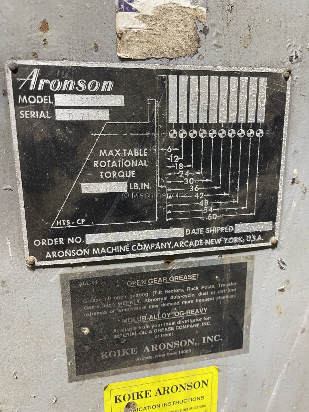 Aronson HS45 Headstock Welding Positioner Model: HS45 Serial: 0074 Capacity: 45,000 LBS (2) AVAILABLE!