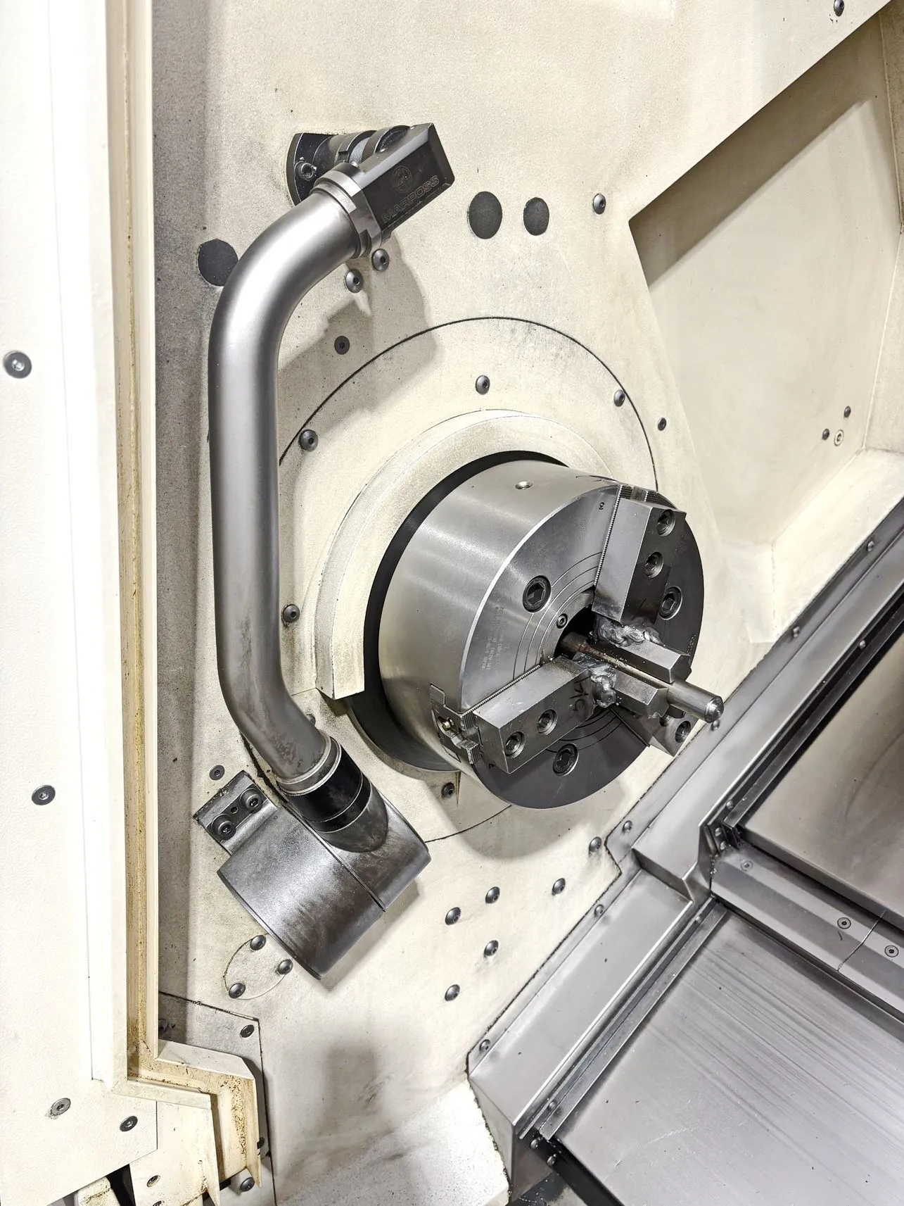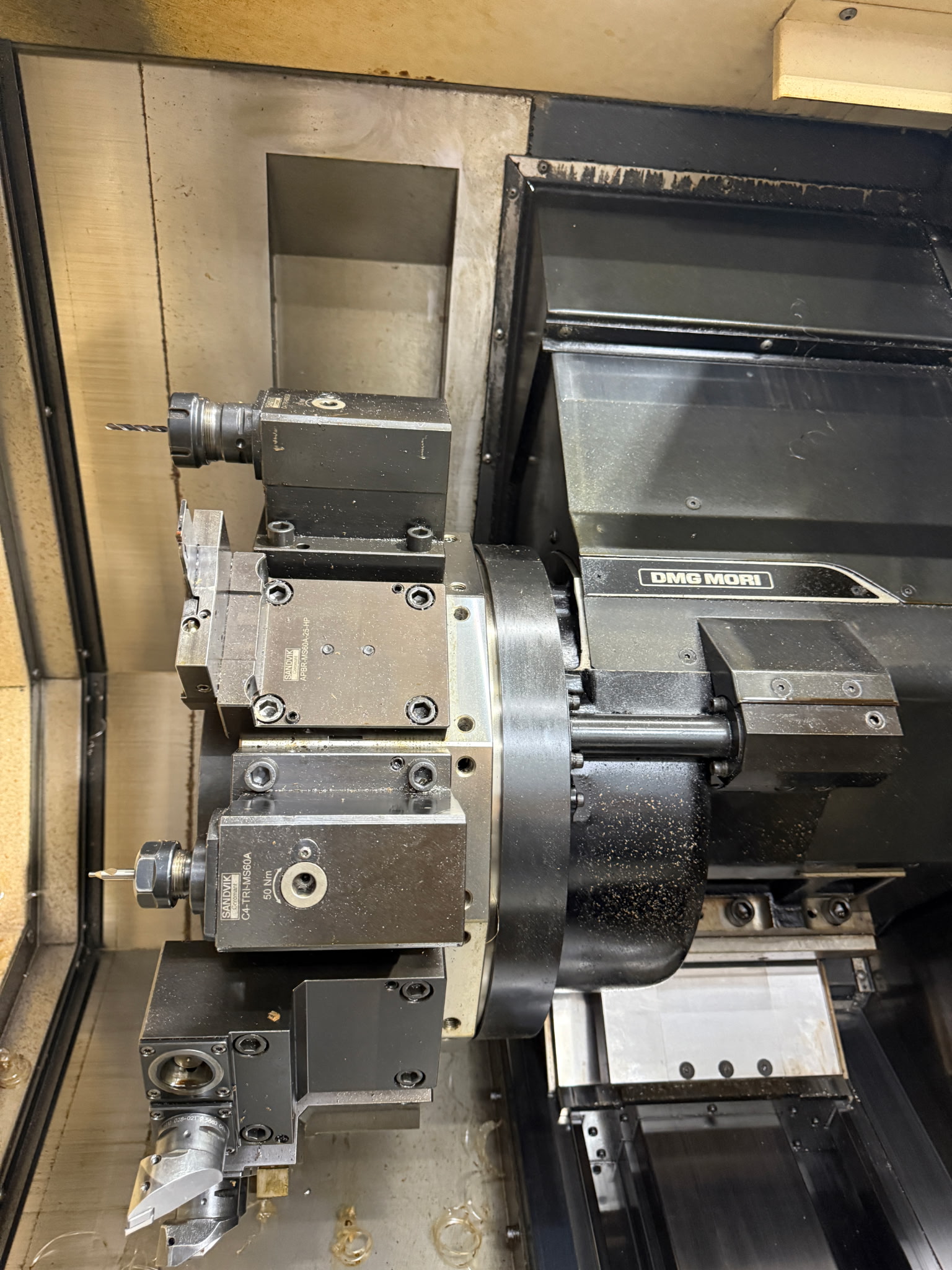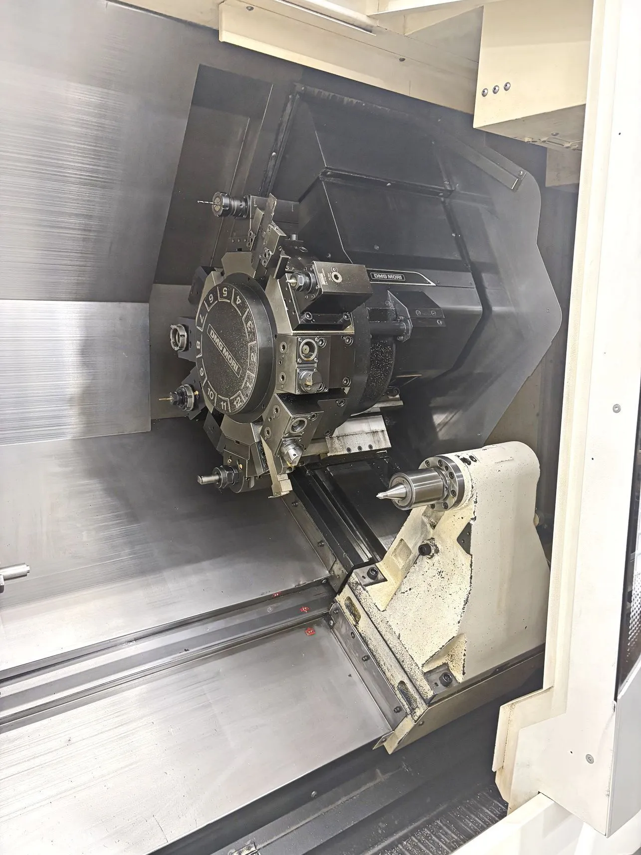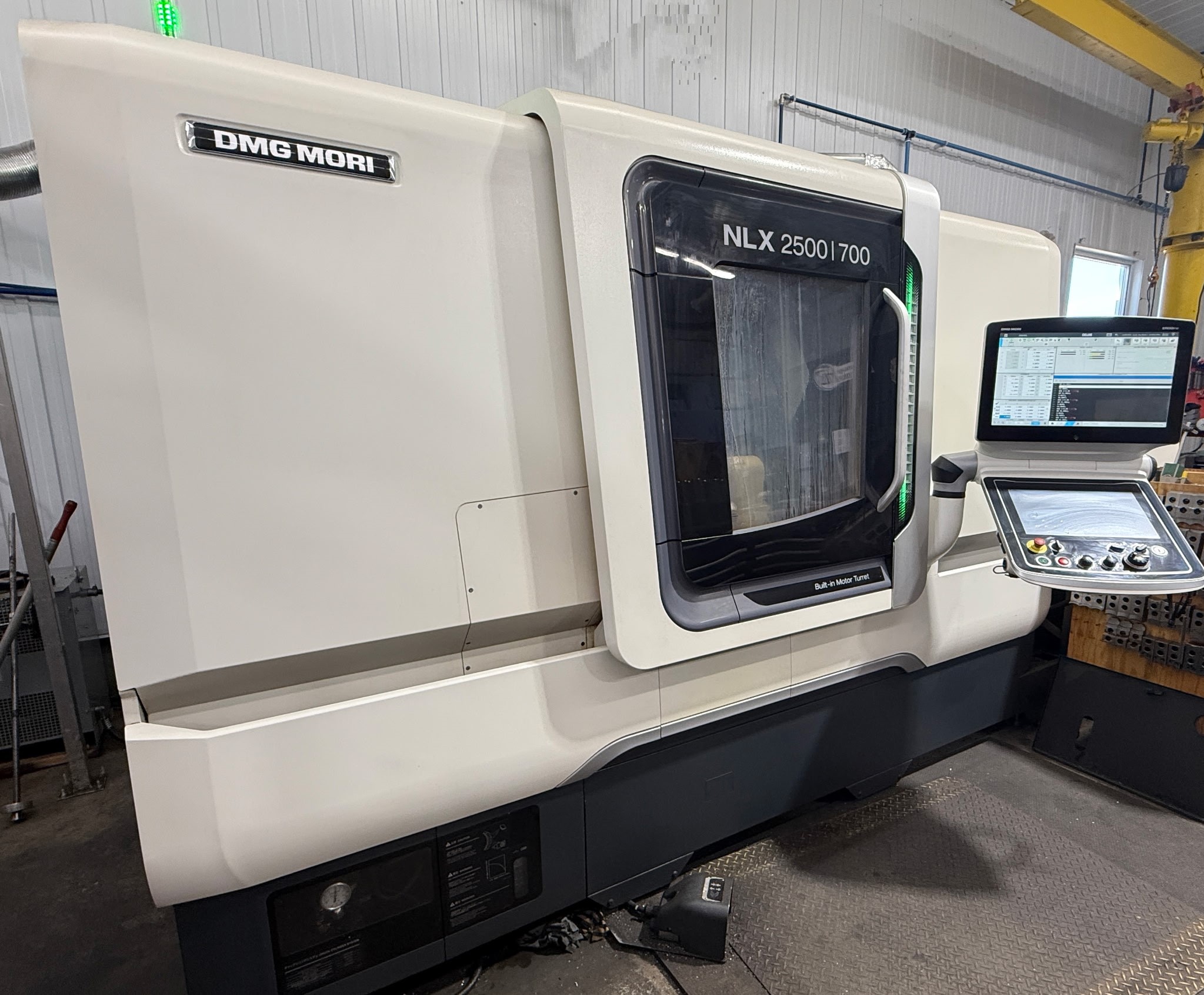 DMG MORI NLX2500Y/700 MULTI-AXIS CNC LATHE TURNING CENTER, 2019 MANUFACTURER: DMG MORI MODEL: NLX2500Y/700 YEAR: 2019 Max Swing 36.2" Turning Dia 14.4" Max Swing Over Cross Slide 29.2" Machining Length 27.7" # Axis 5 Bar Capacity 3.1" Power 24.7 hp Max RPM 4,000 RPM Max RPM (Live Tooling) 10,000 RPM X-Axis Travel 10.2" Y-Axis Travel ±1.97" Z-Axis Travel 31.2" Spindle Nose A2-8 Tailstock Yes Tailstock Travel 28.8" Live Tooling Yes Tailstock Taper MT5 Sub Spindle No Rapid Traverse (X/Z) 1,181 in/min. Rapid Traverse (Y) 393 in/min. Turret Capacity 12 Made In Japan Control CNC (M730UM w/ CELOS) Dimensions 131.8" X 82.9" X 86.6" Weight 13,536 lb EQUIPPED WITH: High-pressure coolant system Live tooling (10,000 rpm) Y-axis 10" Kitagawa hydraulic chuck Programmable servo tailstock MT5 live center Tool presetter CELOS ERGOline touch control Signal tower status light Ethernet Bar feeder interface Chip conveyor ***VERY LOW HOURS***